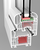 W tym systemie zastosowano rozwiązanie techniczne polegające na wklejeniu szyb o współczynniku Ug=0,3 (W/m2K) . Natomiast w profilach zamiast wzmocnień zastosowano termoplastyczne wkładki wzmocnione włóknem szklanym z tworzywa o nazwie Ultradur High Speed firmy BASF oraz wypełnienie komór pianą poliuretanową. Jest to doskonałe rozwiązanie do domów energooszczędnych i pasywnych.