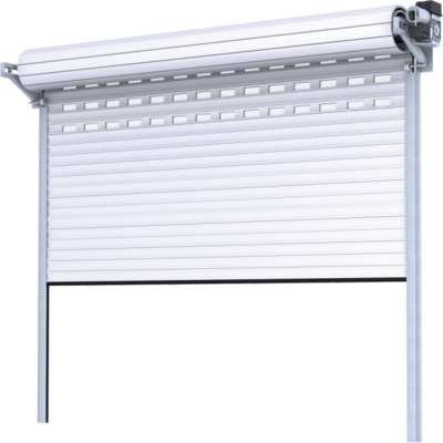 - kurtyna porusza się wzdłuż aluminiowych prowadnic pionowych i nawija się na wał nawojowy