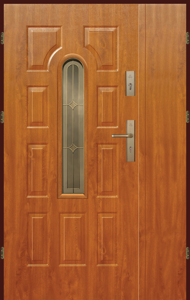 Produkowane przez "Stalprodukt Zamość" stalowe drzwi zewnętrzne dwuskrzydłowe doskonale prezentują się jako drzwi wejściowe w budownictwie jednorodzinnym. Wysoką trwałość i elegancki wygląd w wieloletnim użytkowaniu zapewnia unikalna technologia produkcji z wysokiej jakości blachy. Użytkowane zgodnie z instrukcją obsługi drzwi dwuskrzydłowe są odporne na warunki atmosferyczne zapewniając nie odkształcanie i nie opuszczanie się skrzydeł. Można je skonfigurować z dowolnym tłoczeniem skrzydła głębokotłoczonego dostępnym w ofercie. Sp. z o.o. Blacha, z której produkowane są skrzydła drzwiowe doskonale imituje naturalną strukturę drewna co w połączeniu z bogatą gamą kolorystyczną laminatów umożliwia każdemu klientowi optymalny wybór.