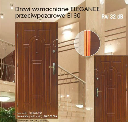 Drzwi zalecane są do stosowania jako drzwi wejściowe z klatki schodowej i korytarzy do mieszkań, hoteli i pomieszczeń użyteczności publicznej. Konstrukcja skrzydeł wykonana jest z materiałów ognioodpornych. Wypełnienie stanowią listwy stabilizujące i wełna mineralna.