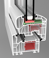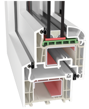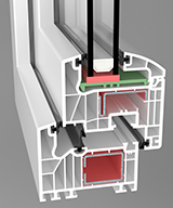W tym systemie zastosowano rozwiązanie techniczne polegające na wklejeniu szyb o współczynniku Ug=0,3 (W/m2K) . Natomiast w profilach zamiast wzmocnień zastosowano termoplastyczne wkładki wzmocnione włóknem szklanym z tworzywa o nazwie Ultradur High Speed firmy BASF oraz wypełnienie komór pianą poliuretanową. Jest to doskonałe rozwiązanie do domów energooszczędnych i pasywnych.