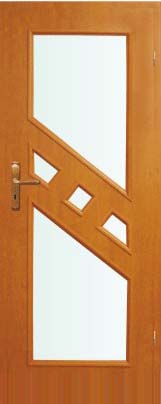 Opis:Skrzydła okleinowane folią finish. Ramiak wykonany z wysokiej jakości MDF obłożony dwiema płytami HDF, wypełnienie wewnętrzne - wzmocniony “plaster miodu”. Ramka plastikowa lub MDF oklejana pod kolor skrzydła. Zamek pod klucz lub wc. Skrzydła przeszklone są fabrycznie szkłem. Ościeżnica stała z MDF, możliwość zastosowania ościeżnicy regulowanej.