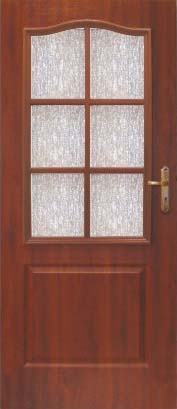 Opis:Skrzydła okleinowane folią finish. Ramiak wykonany z wysokiej jakości MDF obłożony dwiema płytami HDF, wypełnienie wewnętrzne - wzmocniony “plaster miodu”. Ramka plastikowa lub MDF oklejana pod kolor skrzydła. Zamek pod klucz lub wc. Skrzydła przeszklone są fabrycznie szkłem. Ościeżnica stała z MDF, możliwość zastosowania ościeżnicy regulowanej.