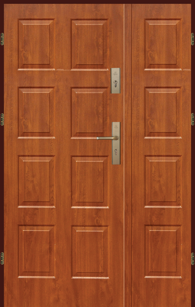 Produkowane przez "Stalprodukt Zamość" stalowe drzwi zewnętrzne dwuskrzydłowe doskonale prezentują się jako drzwi wejściowe w budownictwie jednorodzinnym. Wysoką trwałość i elegancki wygląd w wieloletnim użytkowaniu zapewnia unikalna technologia produkcji z wysokiej jakości blachy. Użytkowane zgodnie z instrukcją obsługi drzwi dwuskrzydłowe są odporne na warunki atmosferyczne zapewniając nie odkształcanie i nie opuszczanie się skrzydeł. Można je skonfigurować z dowolnym tłoczeniem skrzydła głębokotłoczonego dostępnym w ofercie. Sp. z o.o. Blacha, z której produkowane są skrzydła drzwiowe doskonale imituje naturalną strukturę drewna co w połączeniu z bogatą gamą kolorystyczną laminatów umożliwia każdemu klientowi optymalny wybór.